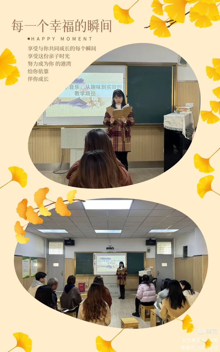 课例展示后,栖霞区优秀青年教师胡老师围绕《玩转小学音乐:从趣味到实效的教学路径》开展交流研讨。胡老师结合自身教学实践,从趣味情境创设、互动形式创新、实效目标落地等方面,分享音乐课堂提质增效的方法策略,聚焦教学中的重点难点,提出贴合小学阶段学生特点的教学思路,引发在场教师的热烈共鸣与深入思考,现场研讨氛围浓厚。